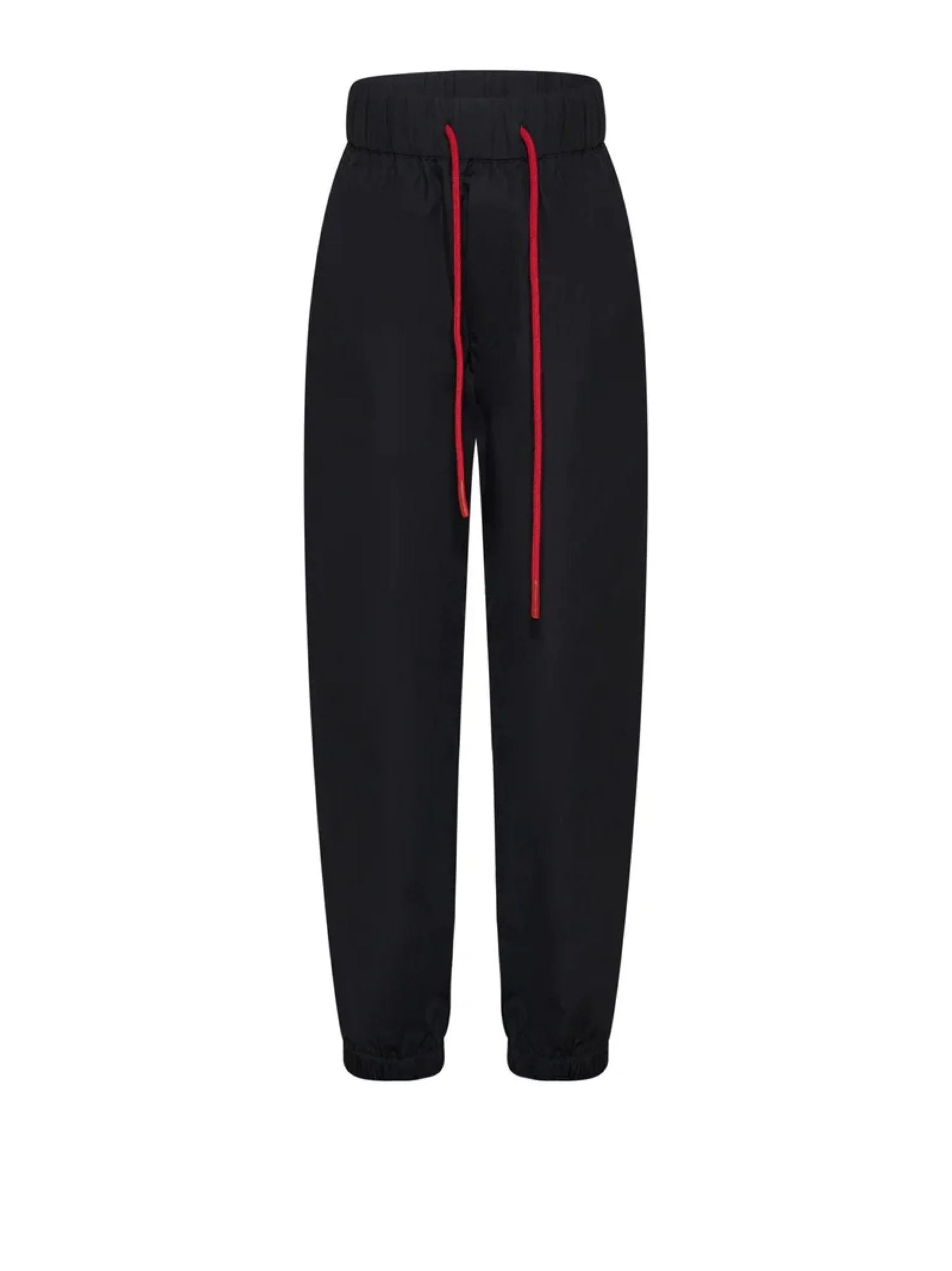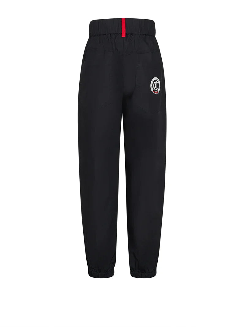 Pantaloni da bambino in cotone. Vita elasticizzata con coulisse, polsini elasticizzati sul fondo. Tasche alla francese sul davanti, tasche sul retro. Stampa del logo sulla tasca posteriore. 100% cotone