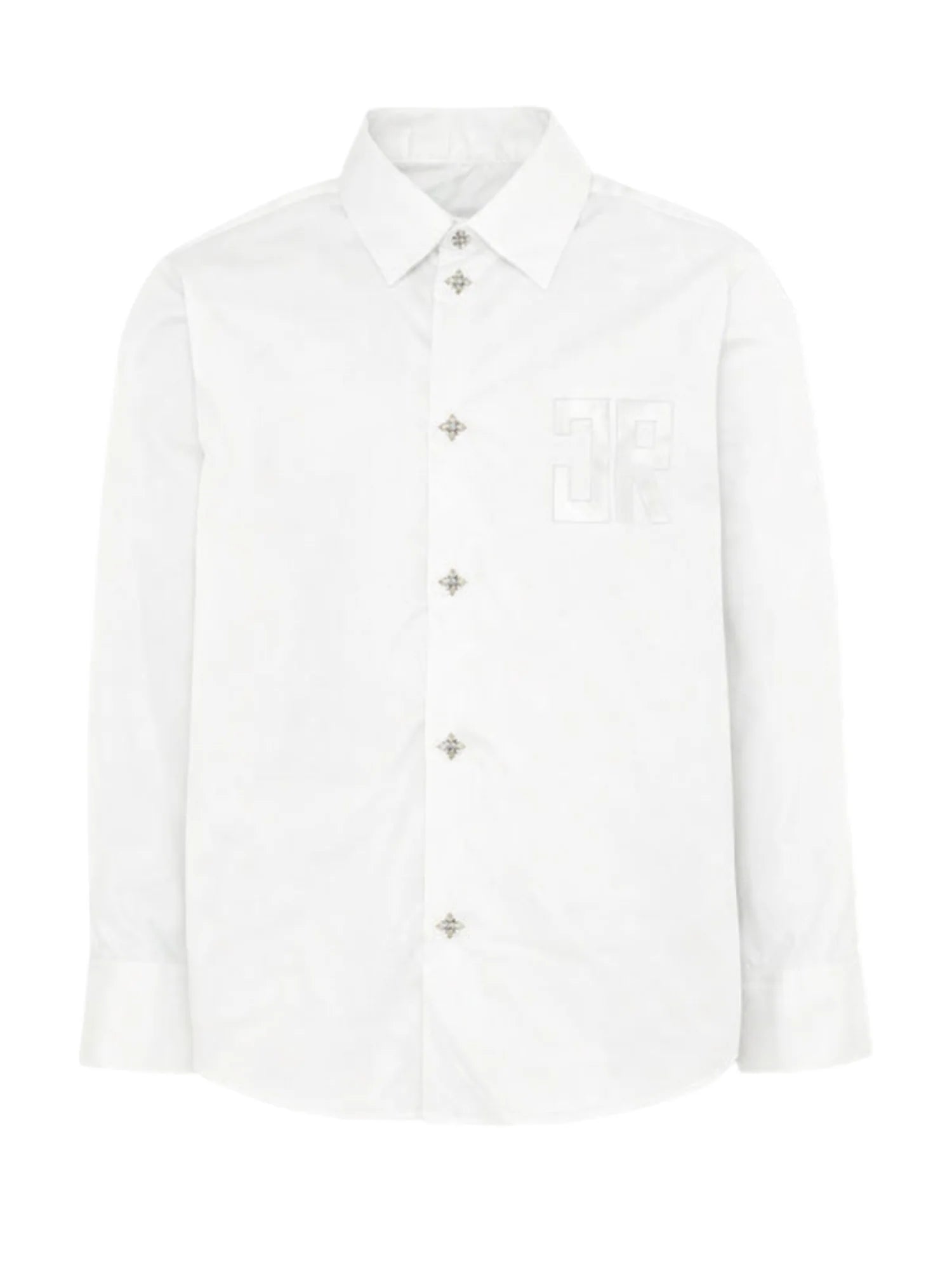 Camicia da bambino in popeline di cotone. Colletto classico, maniche lunghe. Apertura con bottoncini automatici. Stampa del logo sul davanti e sul retro. 100% cotone