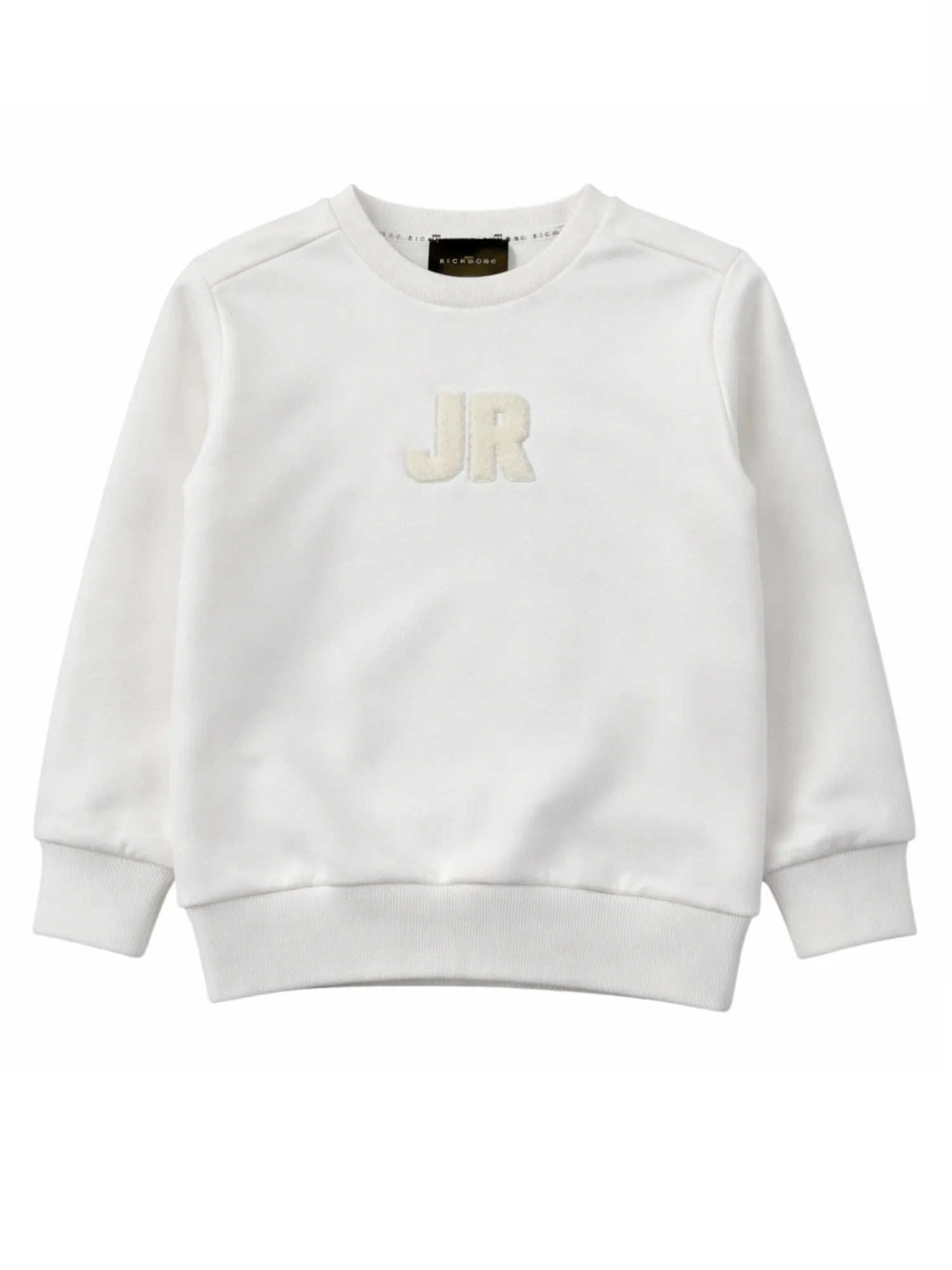 Felpa da bambino in spugna di cotone. Logo monogram in tessuto furry sul davanti. Logo furry tono su tono sul retro. 100% cotone