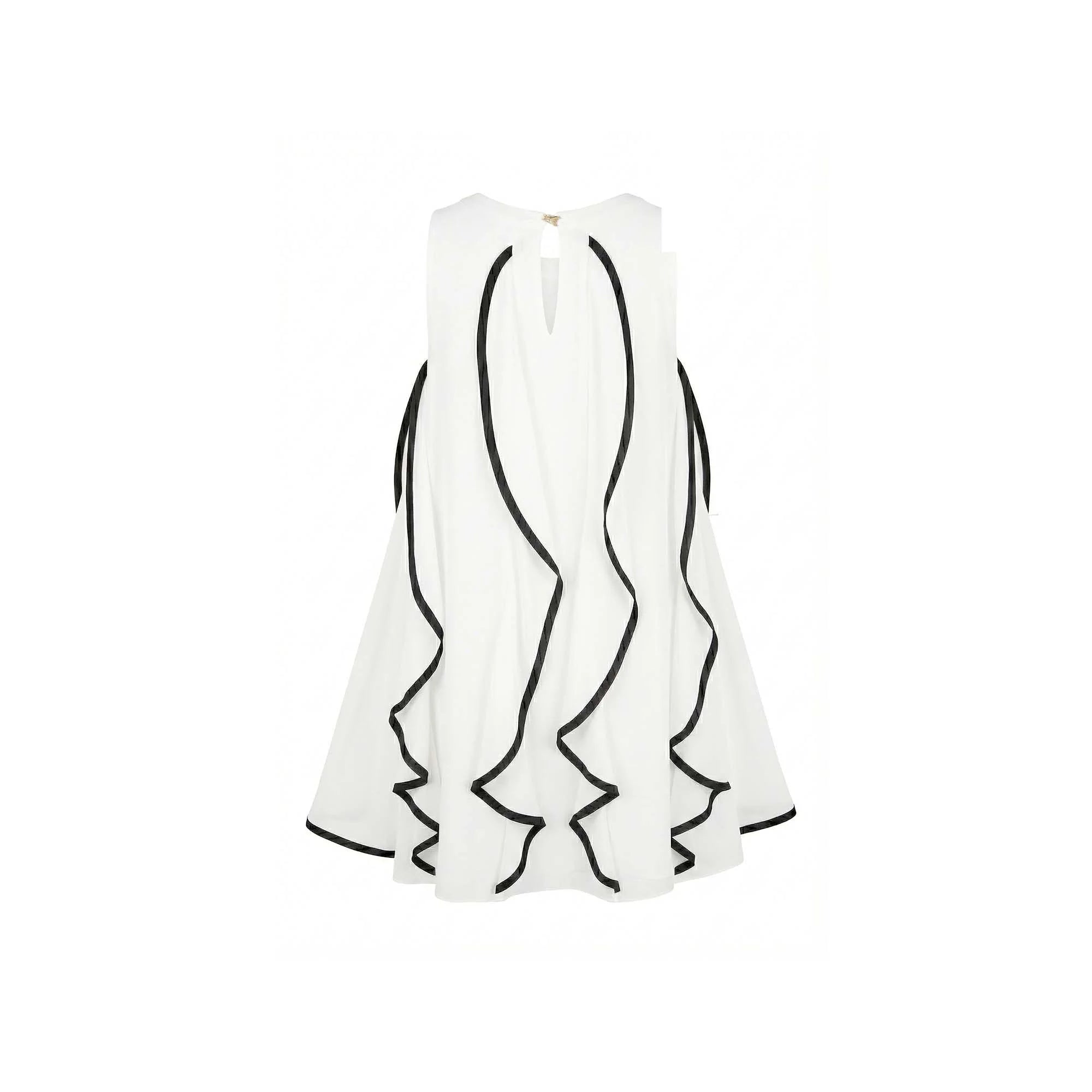 Abito da bambina realizzato in georgette. Modello smanicato. Il vestito è caratterizzato da rouches all over con profili in contrasto di colore. Qesto abito è perfetto per una cerimonia o un'occasione speciale. 100% poliestere