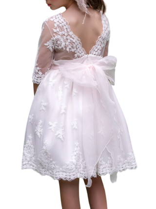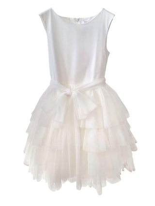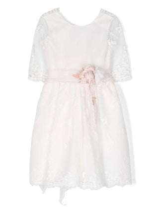 Mimilù abito elegante in tulle con ricami floreali bianco
