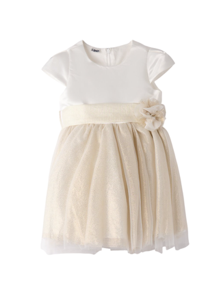 Mimilù abito da cerimonia in mikado con tulle bianco rosa