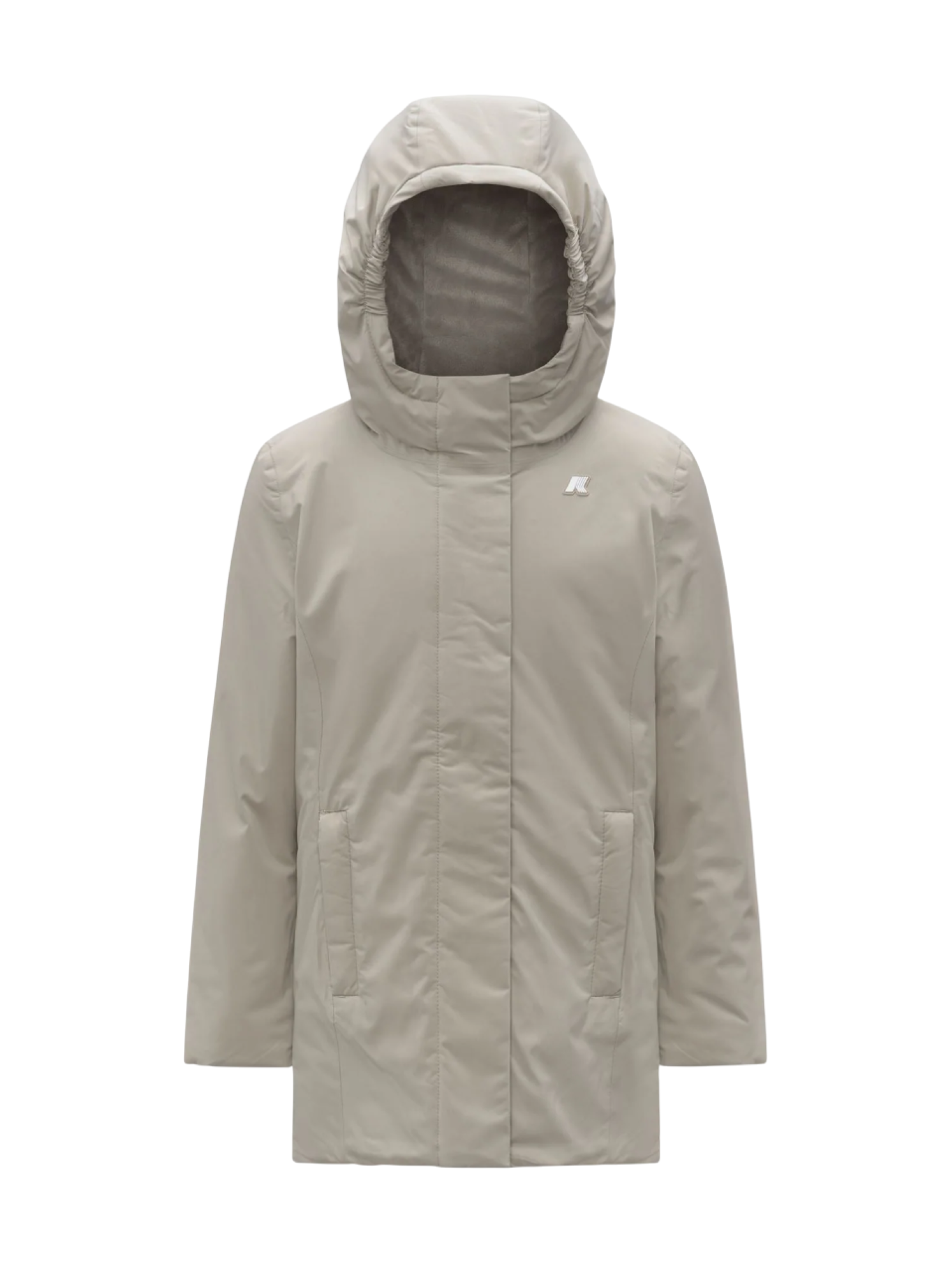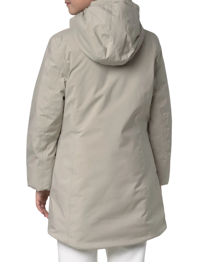 Piumino lungo da bambina realizzato in nylon. Cappuccio fisso, patch del logo. Chiusura con zip nascosta da patta richiudibile con bottoni automatici. Tasche con zip. Interno in pile. Imbottitura in ovatta. 100% poliestere