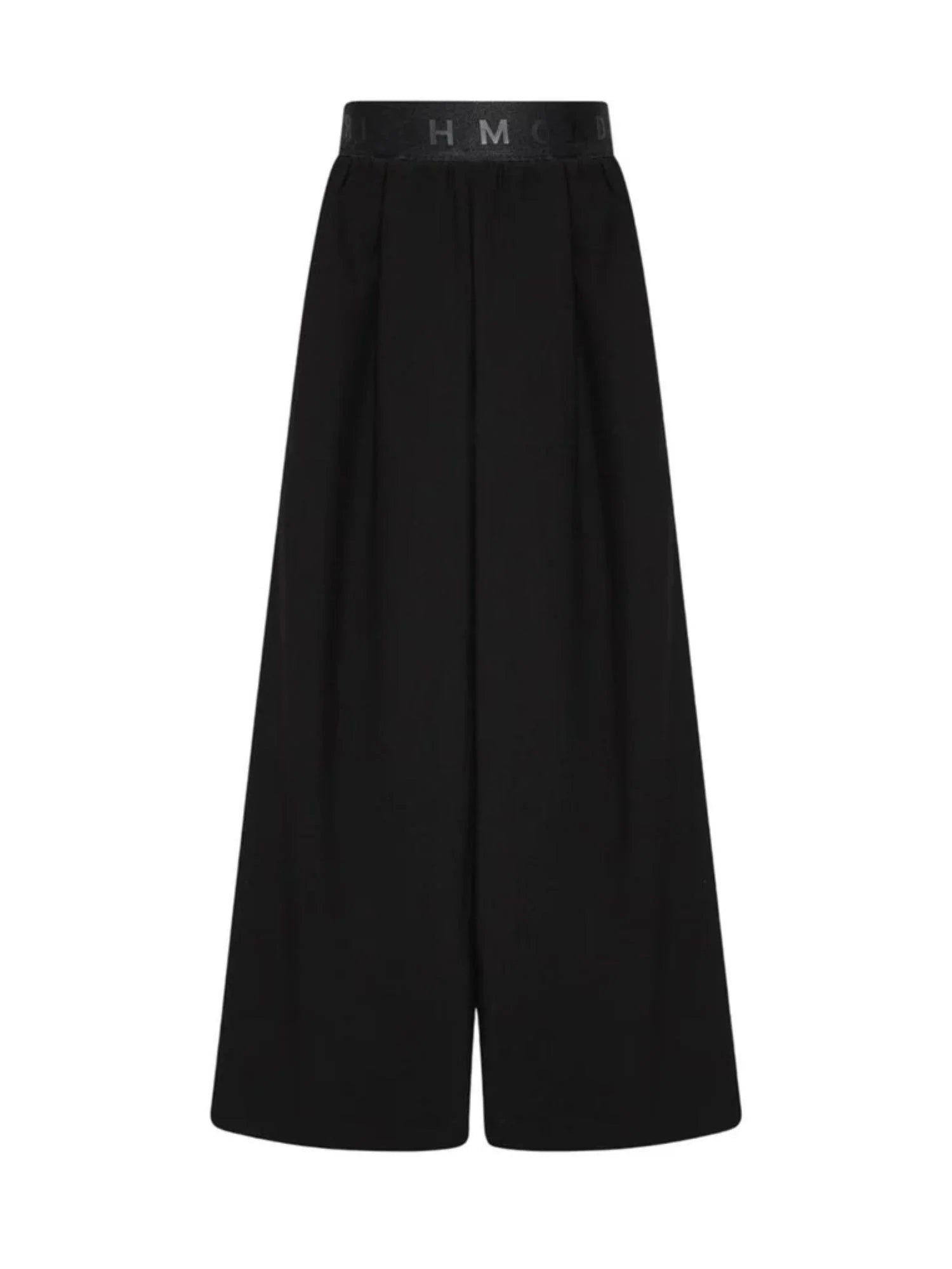Pantaloni da bambina in tessuto misto viscosa. Banda elasticizzata in vita con logo tono su tono. Gamba larga con pinces sul davanti. 76% poliestere 21% viscosa 3% elastan