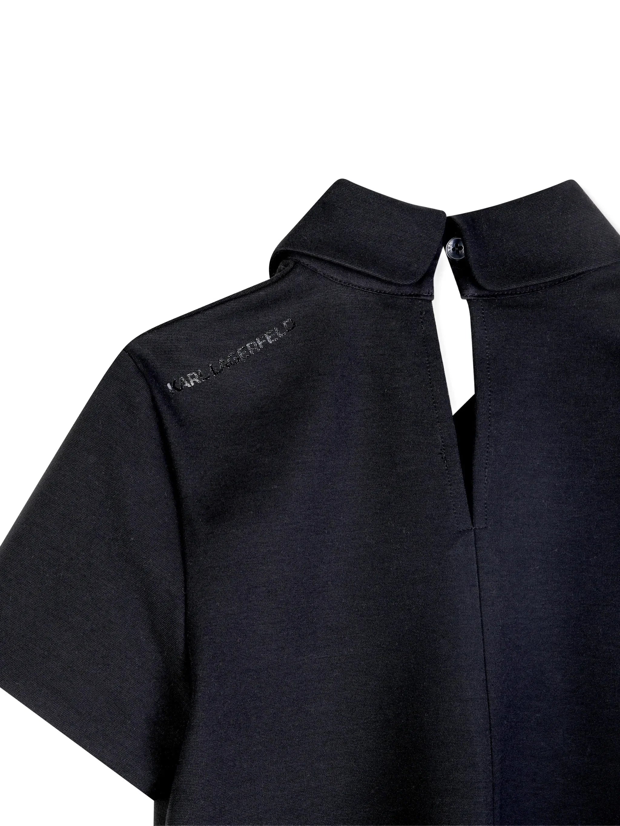 Karl Lagerfeld polo bambina manica corta con logo paillettes nero