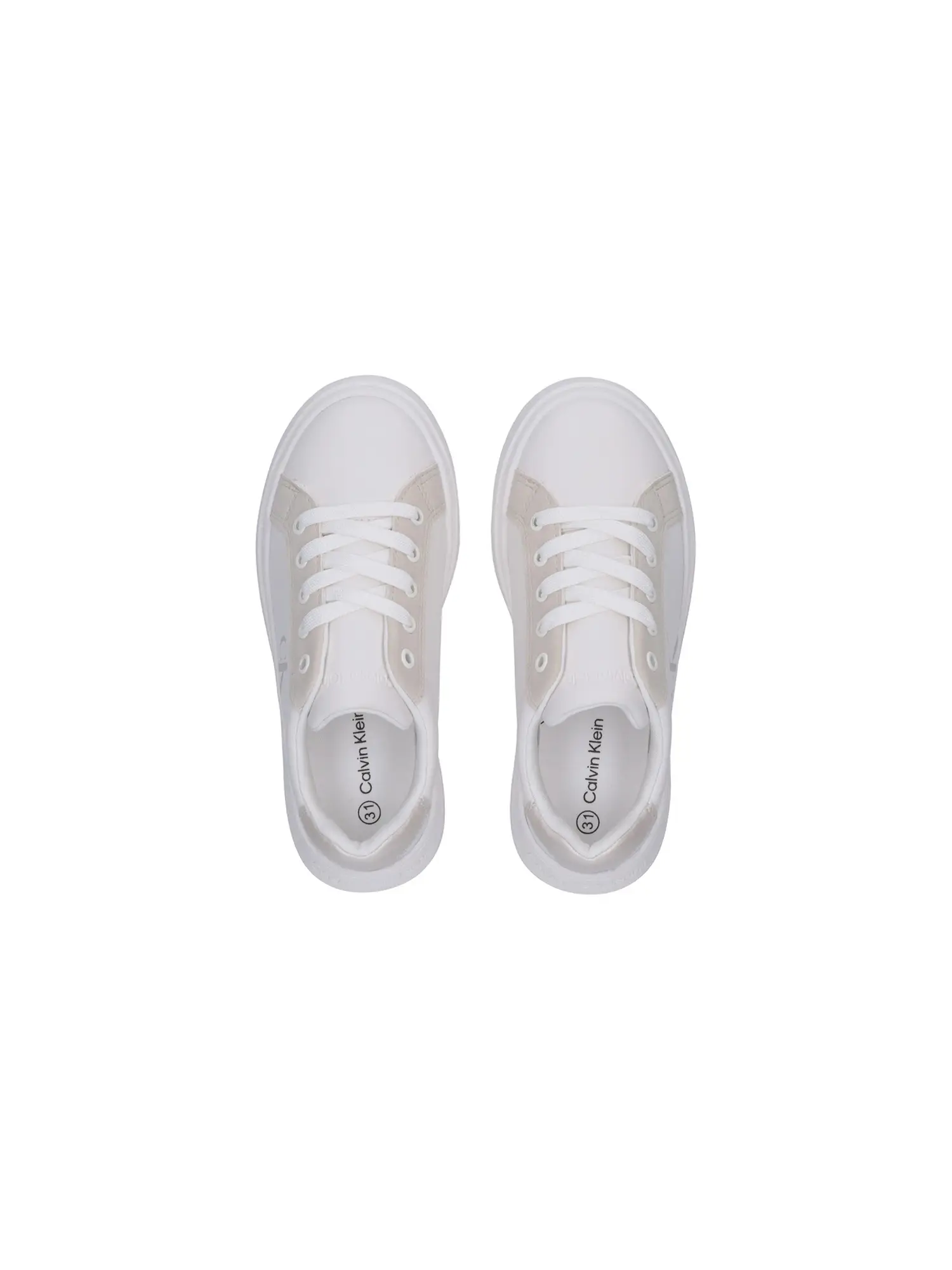 Calvin Klein sneakers bambina in ecopelle bianco beige