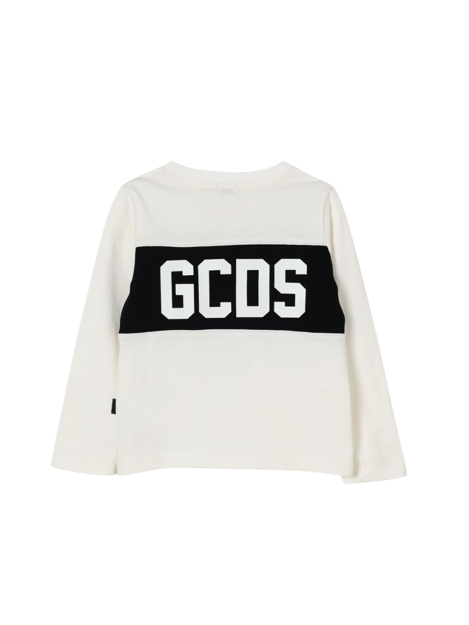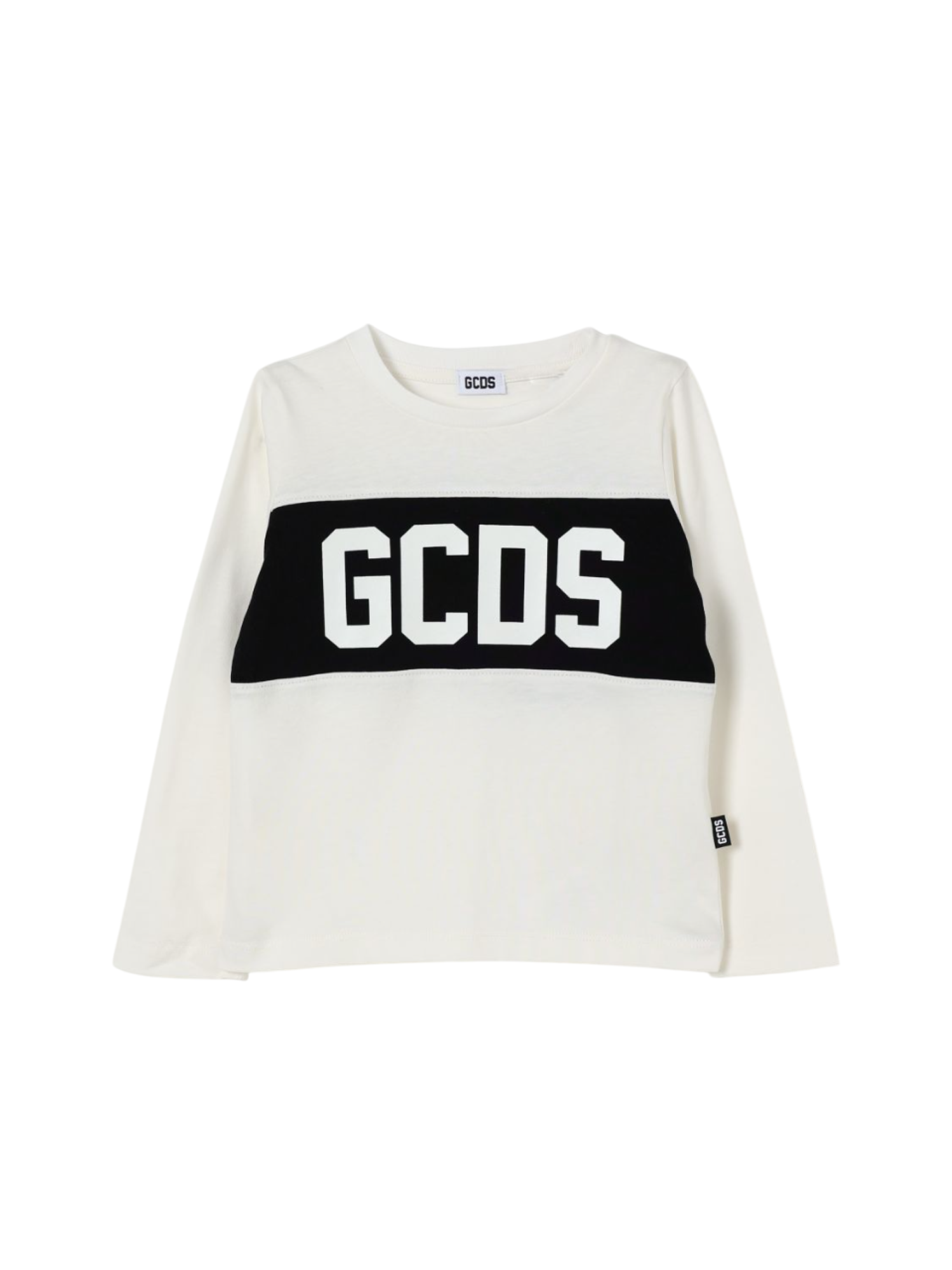 T-shirt da bambino realizzata in jersey di cotone. Banda in contrasto di colore con stampa logo. Maniche lunghe. 100% cotone