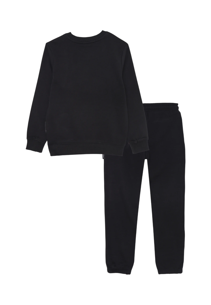 Completo sportivo da bambino composto da felpa e pantaloni. Felpa girocollo con maxi logo. Pantaloni joggers con vita e polsini elasticizzati. 86% cotone 14% poliestere