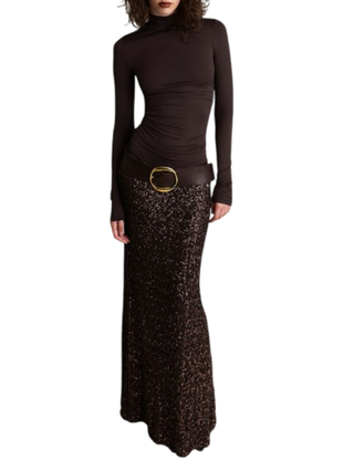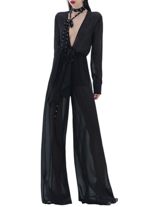 Alessandro Legora abito lungo con dettagli gioiello nero