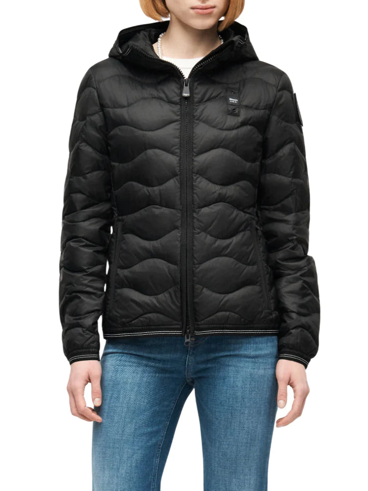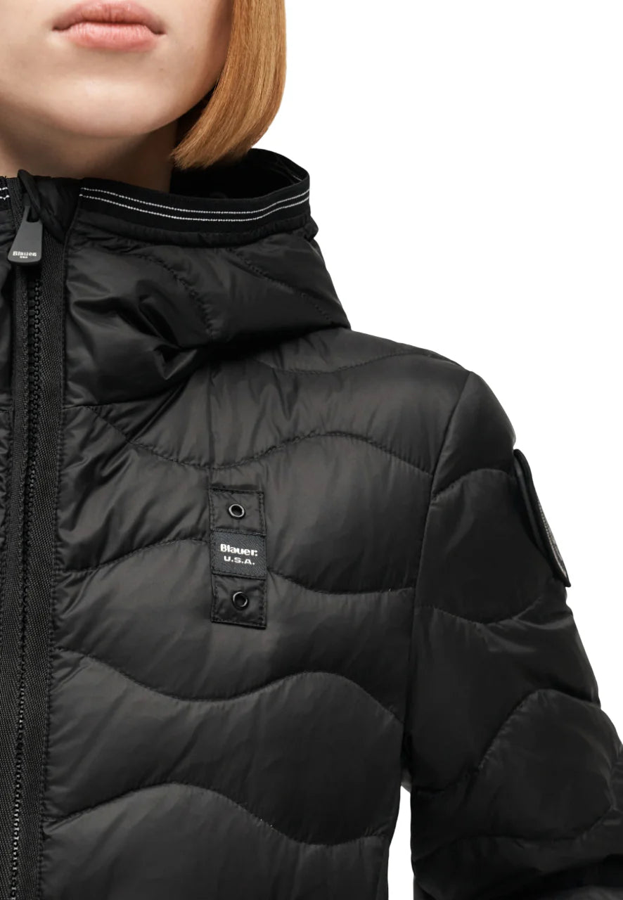 Blauer giubbino imbottito donna Camelia con cappuccio nero