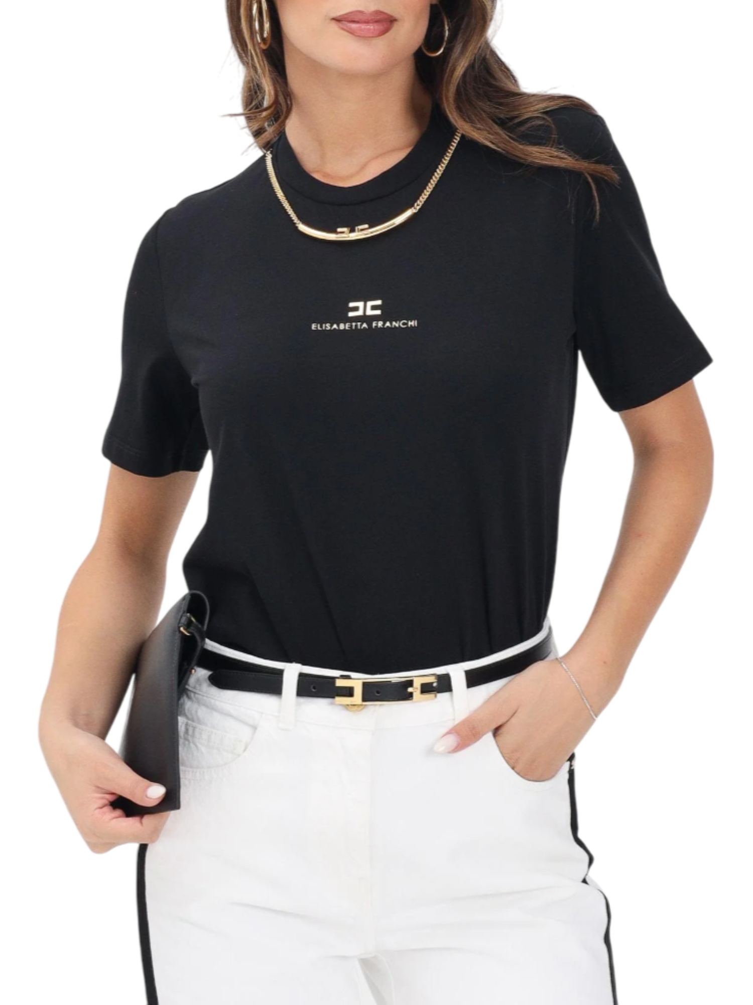 Elisabetta Franchi T-shirt in jersey con collana logata nero