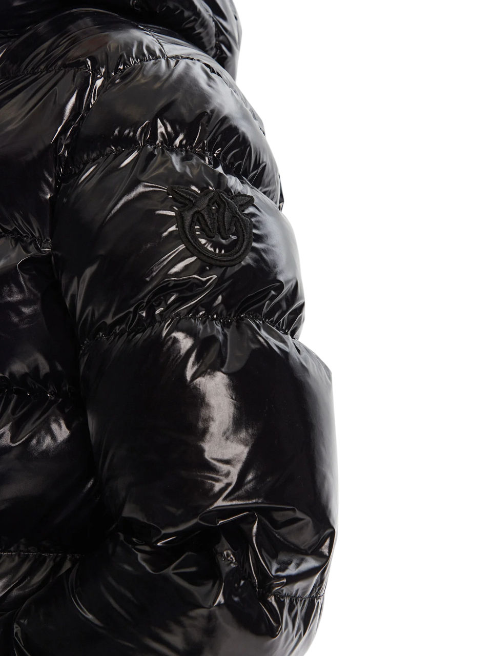 Pinko piumino Eleodoro con cappuccio in nylon lucido nero