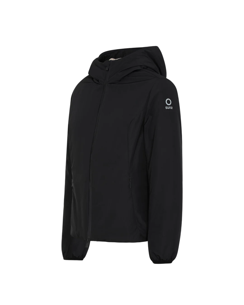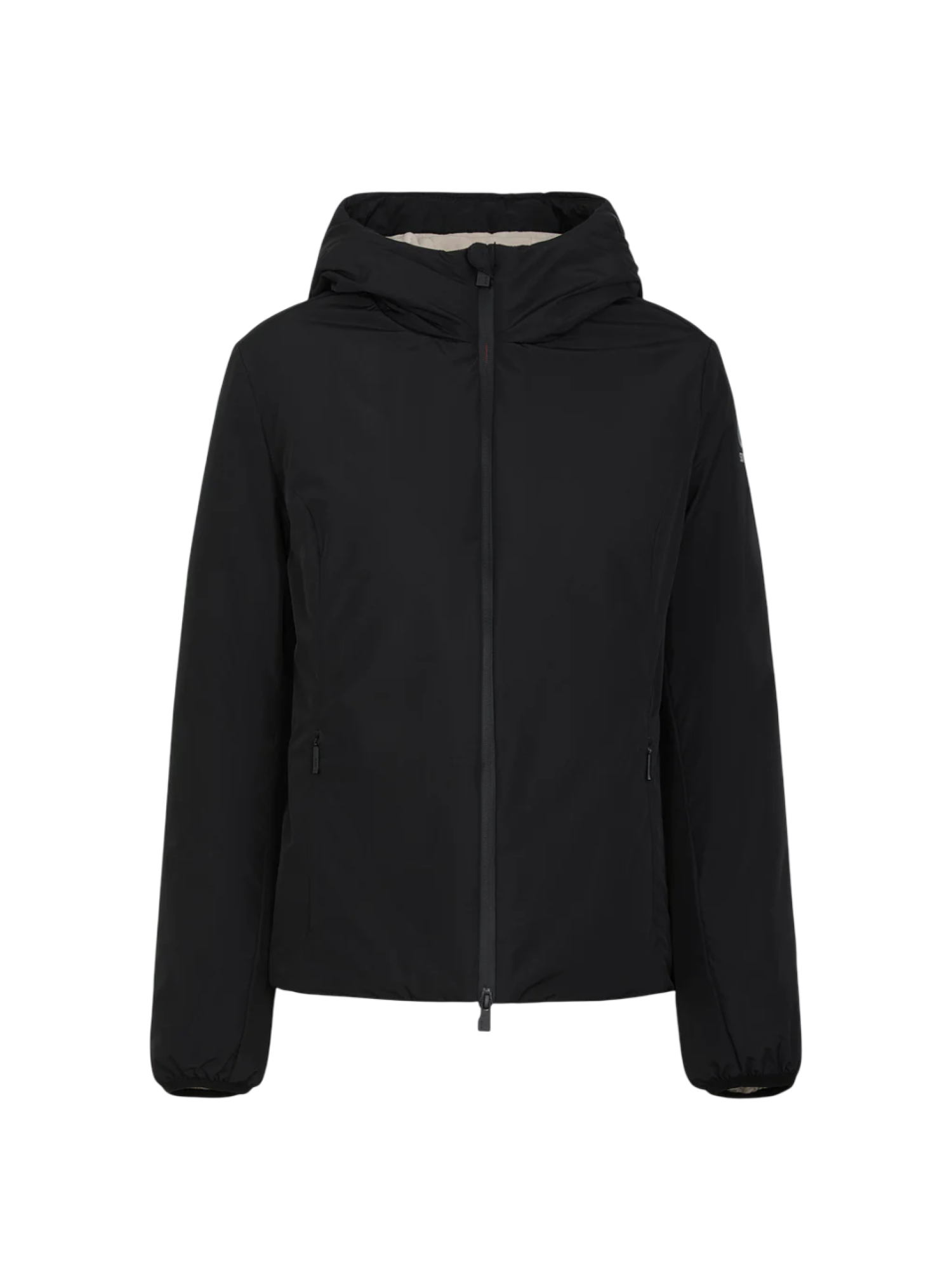 Giubbino da donna realizzato in tela tecnica e caratterizzato da interno in morbida e calda eco pelliccia. Cappuccio fisso, apertura frontale con cerniera. Tasche con zip sul davanti. 100% poliestere