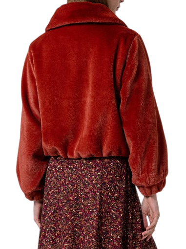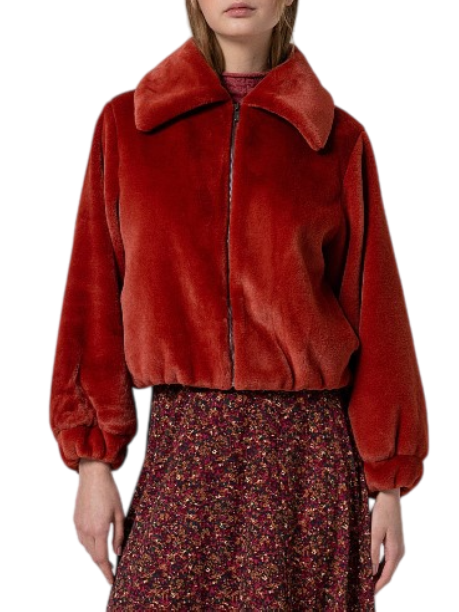 Pelliccia ecologica da donna caratterizzata da un'apertura con zip. Collo ampio. Fondo e polsini elasticizzati. 100% poliestere