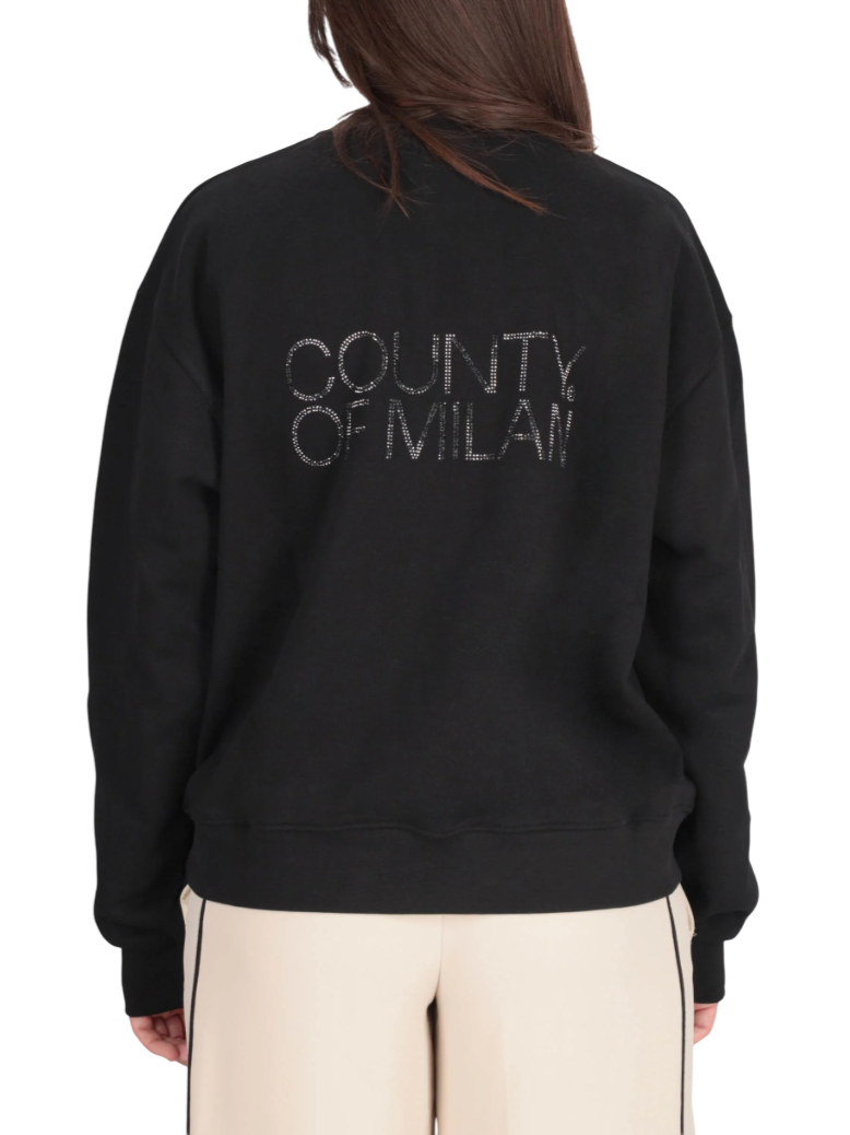 Felpa da donna realizzata in spugna di cotone. Logo con strass sul davanti e sul retro. 100% cotone