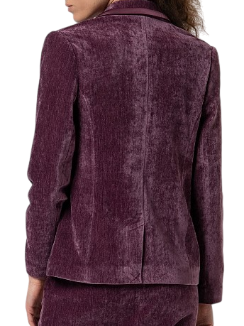 Giacca stile blazer da donna realizzata in velluto. Abbottonatura monopetto, tasche con patta sul davanti. Collo revers a lancia caratterizzato da un inserto satin. 97% poliestere 3% elastan