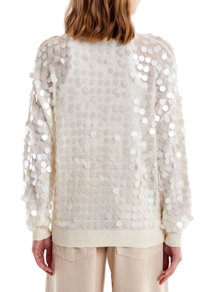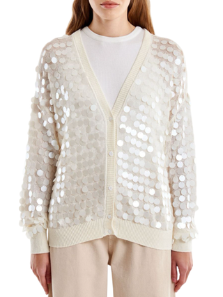 Pieces cardigan misto lana con paillettes tortora