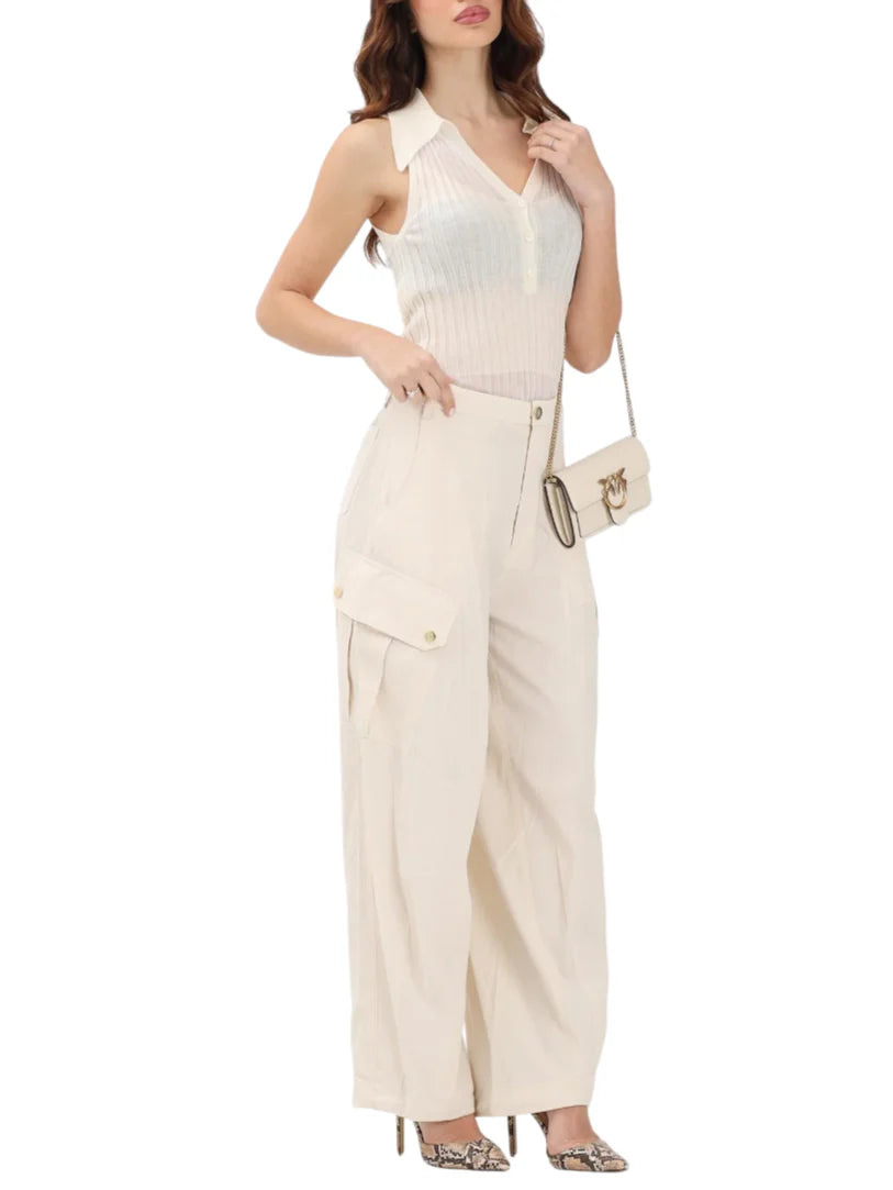 Pinko pantaloni cargo Rosalin gamba larga beige chiaro