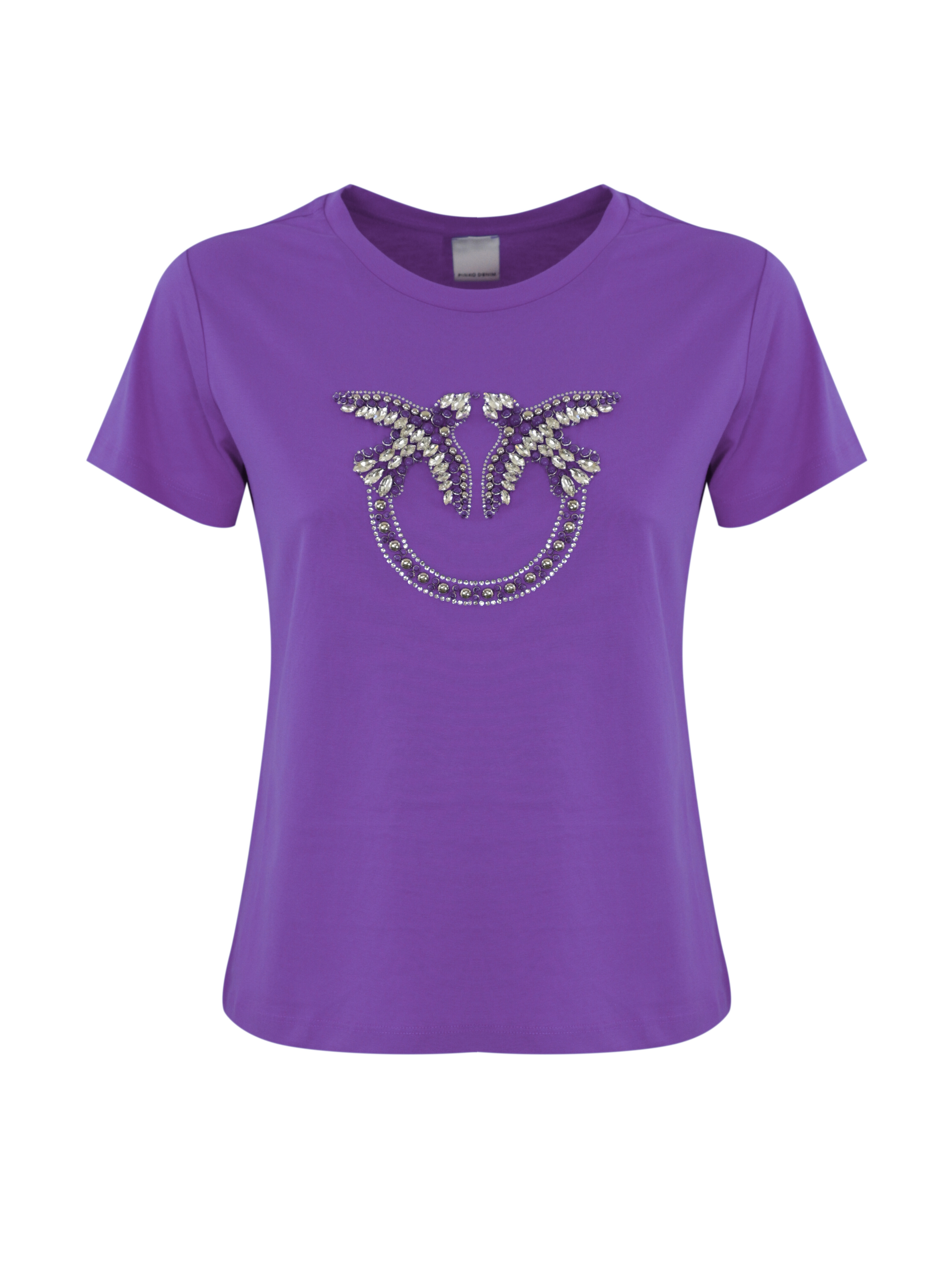 T-shirt da donna realizzata in jersey di cotone. Maniche corte. Il davanti presenta un maxi logo Love Birds impreziosito da applicazioni gioiello tono su tono. 100% cotone