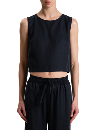 Karl Lagerfeld Jeans top crop in denim spalmato nero