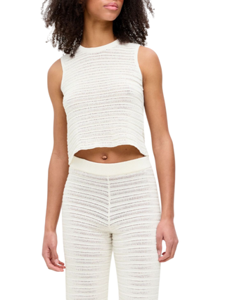Calvin Klein Jeans top crop in maglia a costine ecrù