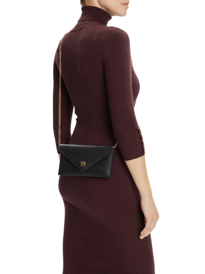 Pinko borsa Flat Purse Mini in pelle nero oro