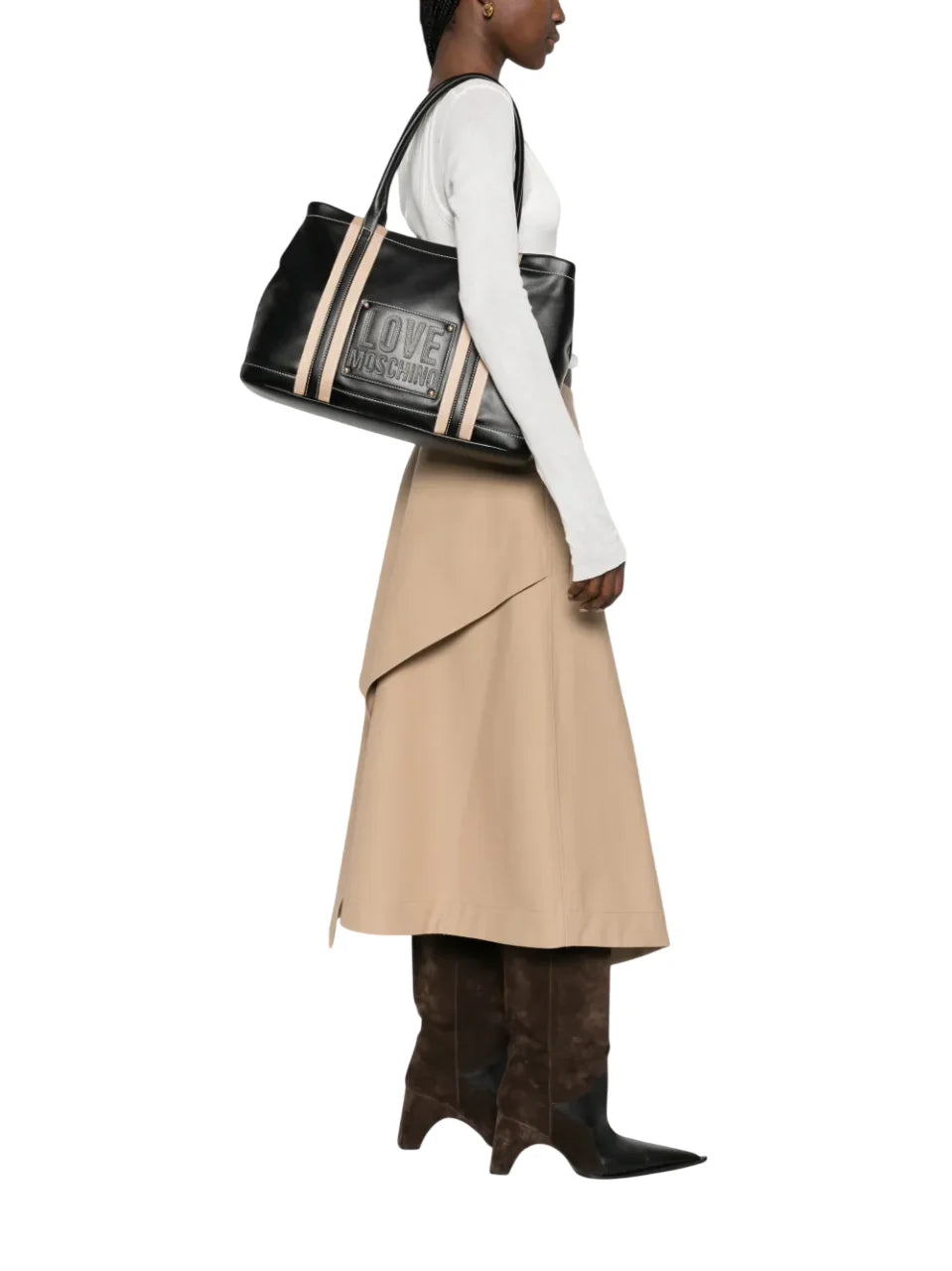 Borsa a spalla da donna realizzata in ecopelle. Patch con logo tono su tono e impunutre in contrasto. Manici in ecopelle. Chiusura superiore con zip. Misure: 40x28x12 cm 100% poliuretano