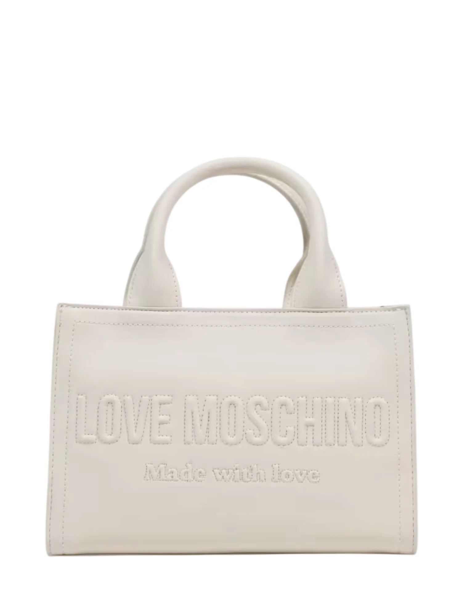 Borsa a mano da donna realizzata in ecopelle. Due manici, tracolla rimovibile in canetè ed ecopelle. Logo in rilievo con impunture tono su tono sul davanti. Chiusura zip sulla parte superiore. Misure: 26x17x8 cm 100% poliestere
