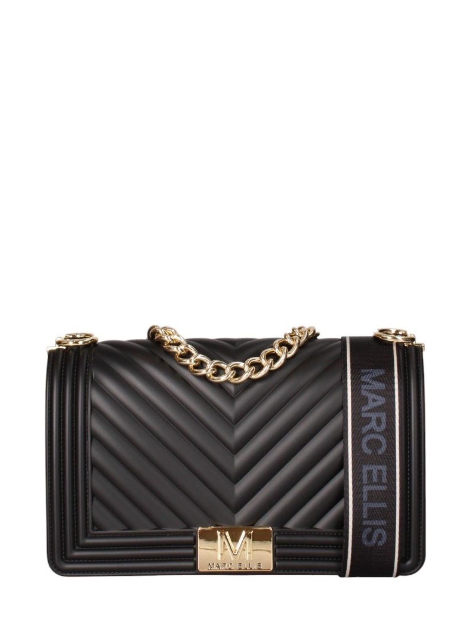 Marc Ellis borsa Flat M in gomma trapuntata nero oro