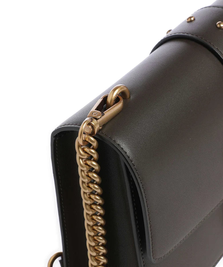 Pinko borsa a tracolla Love One Classic in pelle verde fango oro