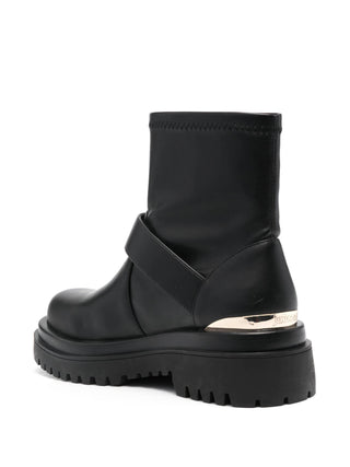 Pinko stivali anfibi Mia con placca Love Birds in pelle nero