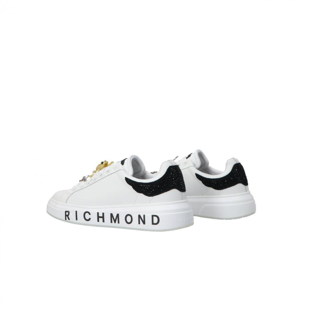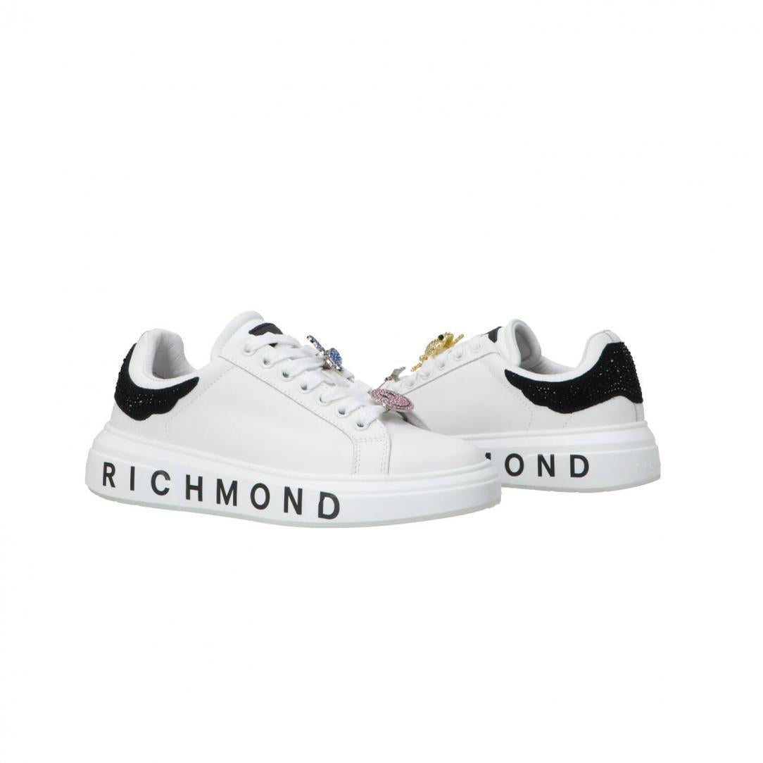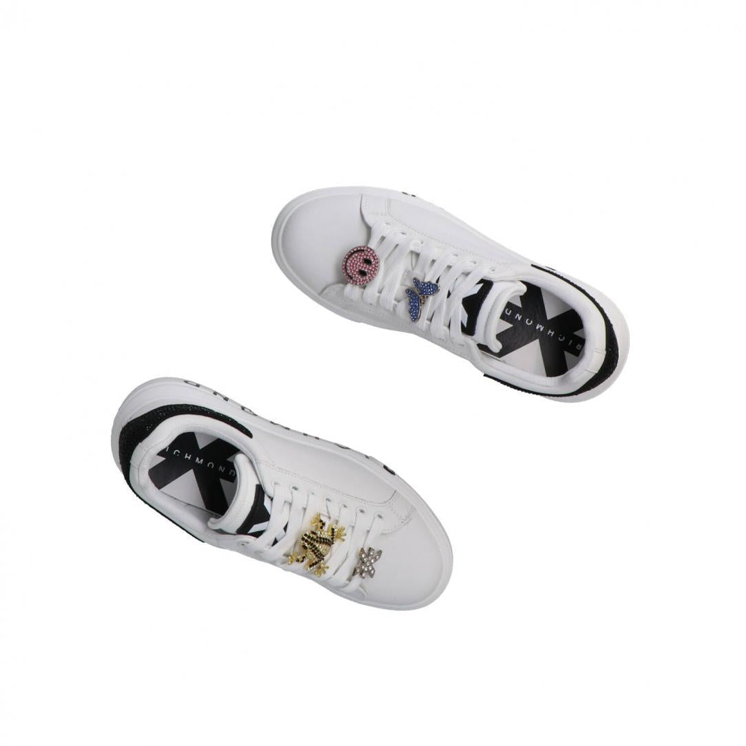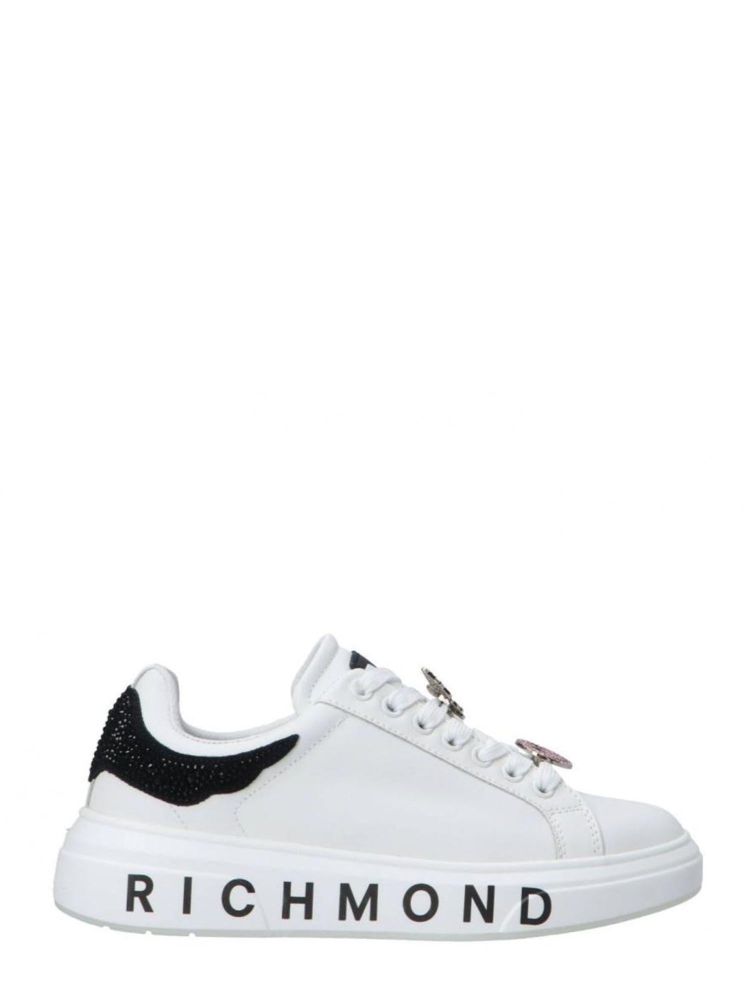 Sneakers da donna realizzate in pelle. Il retro presenta un inserto in suede con strass tono su tono. Allacciatura con stringhe impreziosita da charm con strass. Maxi stampa del logo sulla para. Tomaia in pelle Suola in gomma