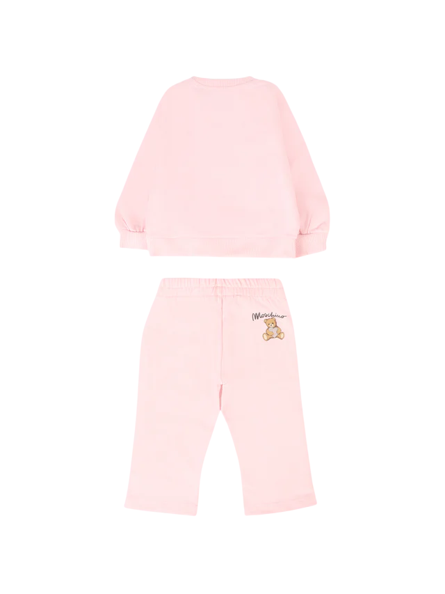 Completo da neonata realizzato in cotone felpato. Felpa con stampa del logo e dell'orsetto Teddy Bear. 100% cotone