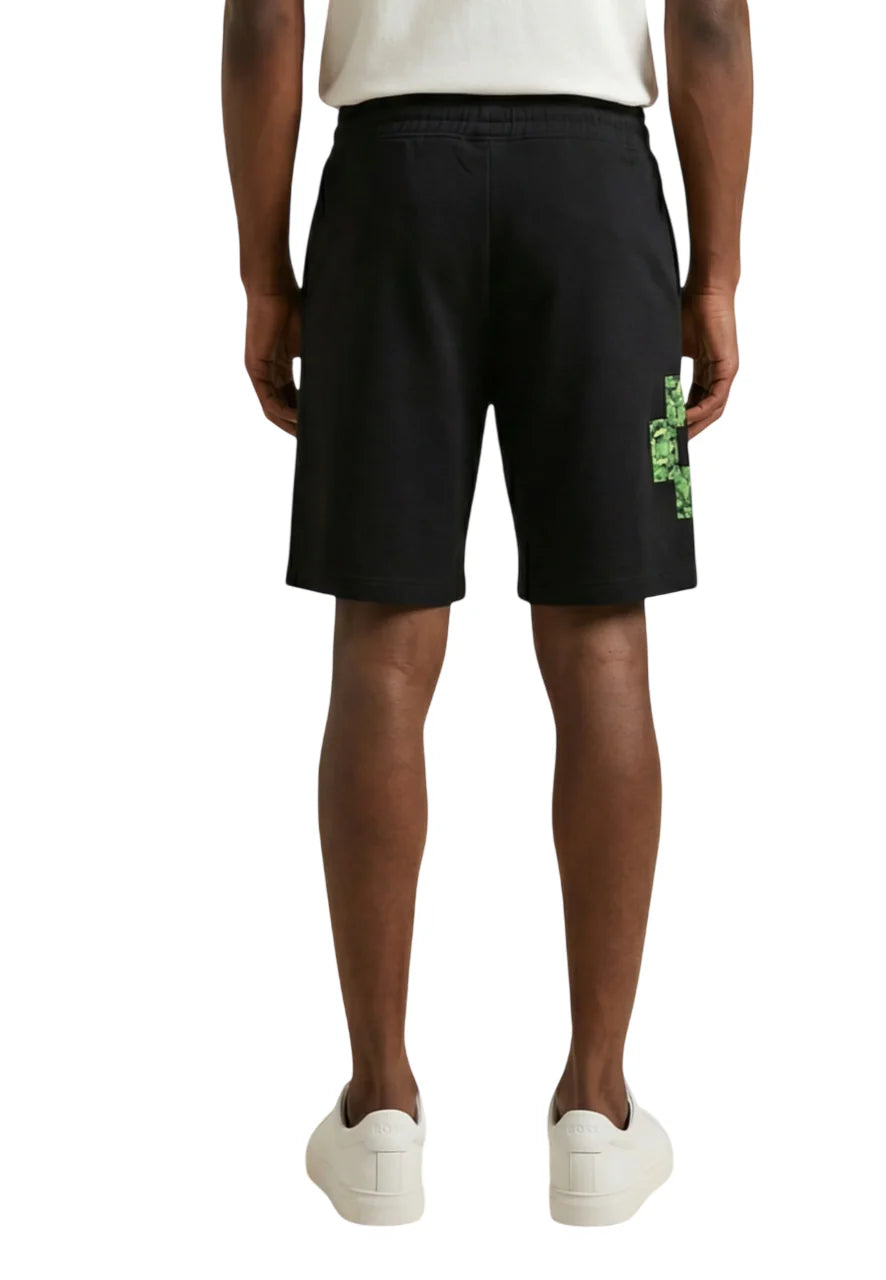 Bermuda da uomo in spugna di cotone. Vita elasticizzata con coulisse. Stampa del logo iconico sul lato e sul davanti. 100% cotone