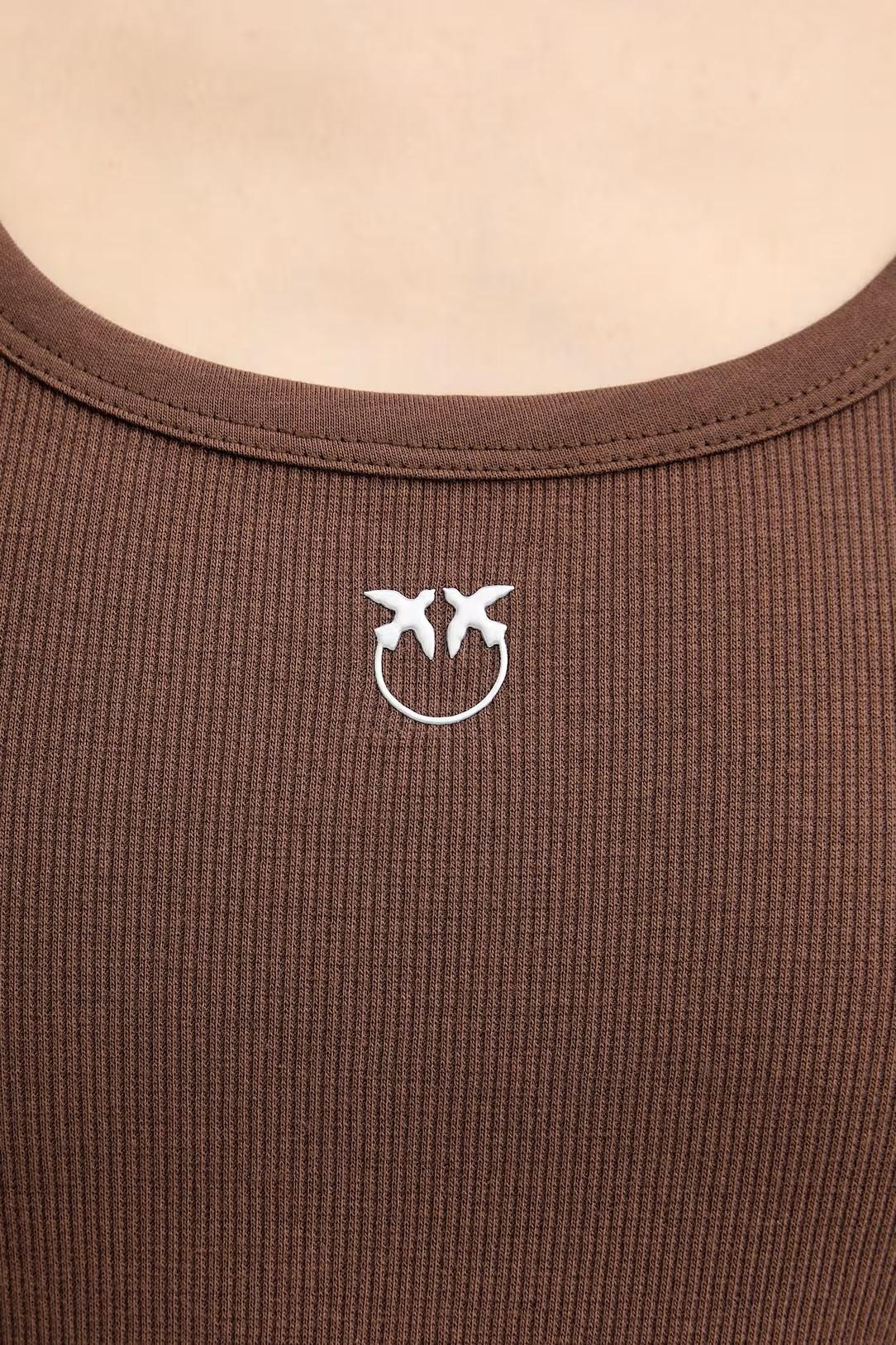 Canotta da donna in cotone stretch a costine. Logo Love Birds color argento sul davanti. 97% cotone 3% elastan