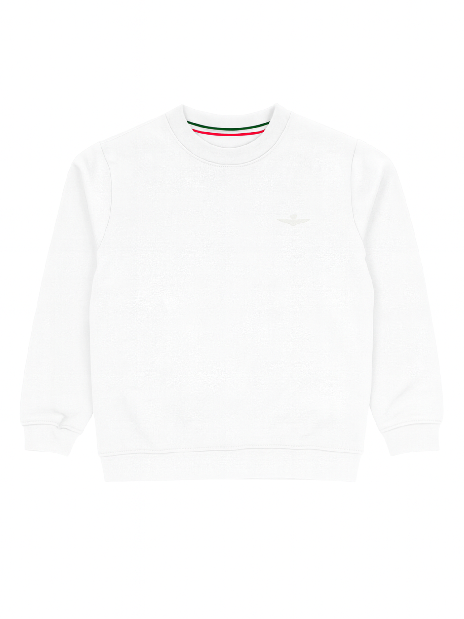 Felpa da bambino realizzata in spugna di cotone. Ricamo del logo iconico tono su tono sul davanti. 100% cotone
