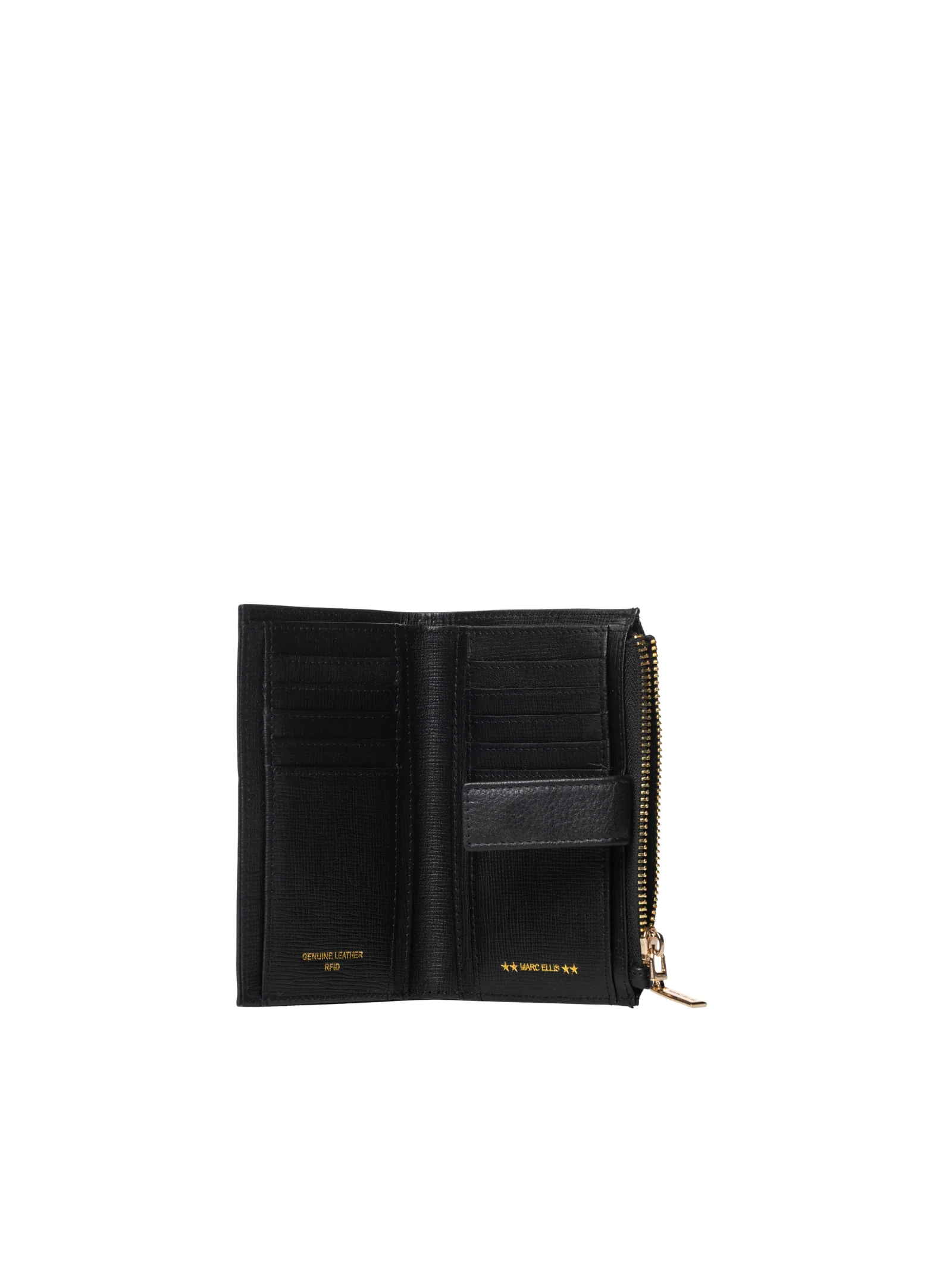 Portafogli da donna realizzato in ecopelle martellata. Tasca portamonete con zip, 10 fessure porta tessere. Placca del logo in galvanica dorata. Misure: 14x9x3 cm
