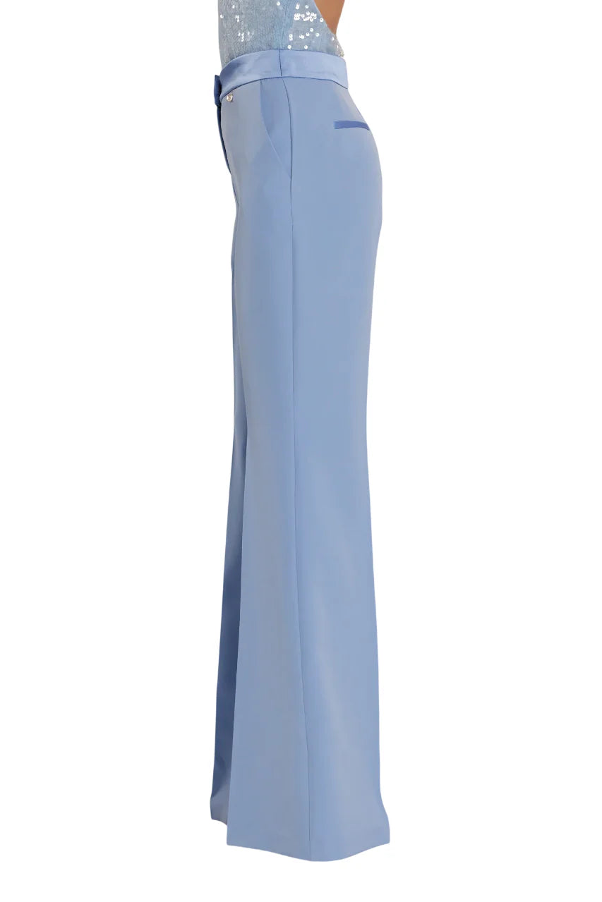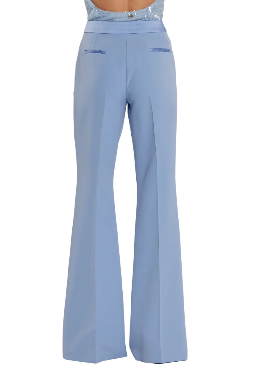 Relish pantaloni a zampa con dettagli satin celeste