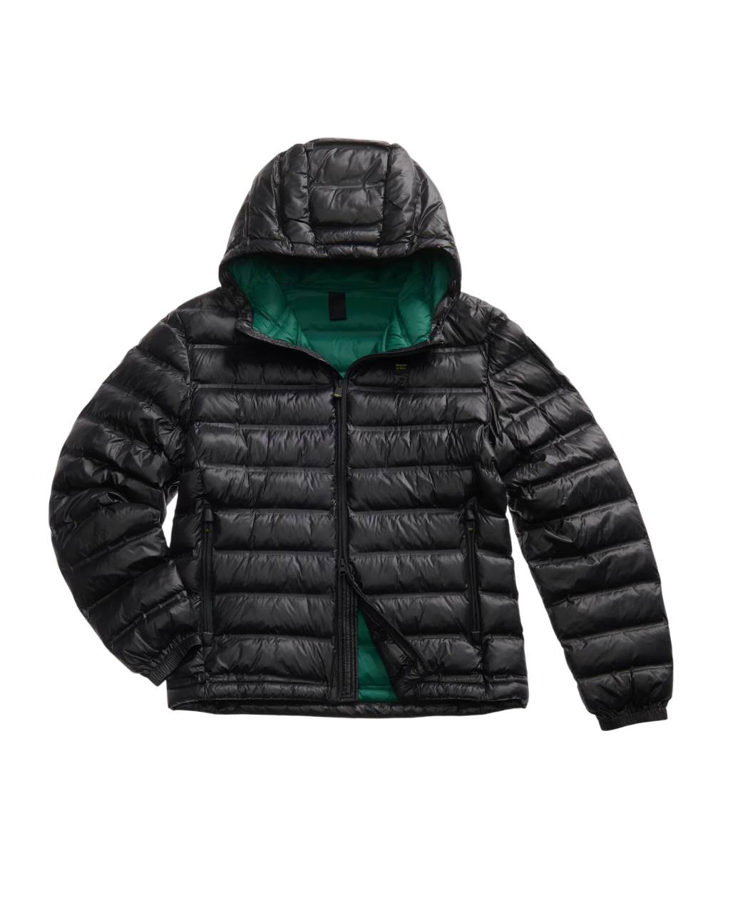 Piumino da uomo realizzato in nylon trapuntato idrorepellente. Cappuccio fisso con coulisse, chiusura con zip nascosta. Passante iconico, patch scudo sulla manica, tasche con zip. Imbottitura in ovatta. Tessuto principale 100% nylon Imbottitura in ovatta