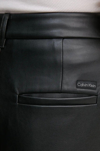 Pantaloni da donna realizzati in ecopelle. Chiusura con zip e gancetti nascosti. Gamba larga.100% poliestere