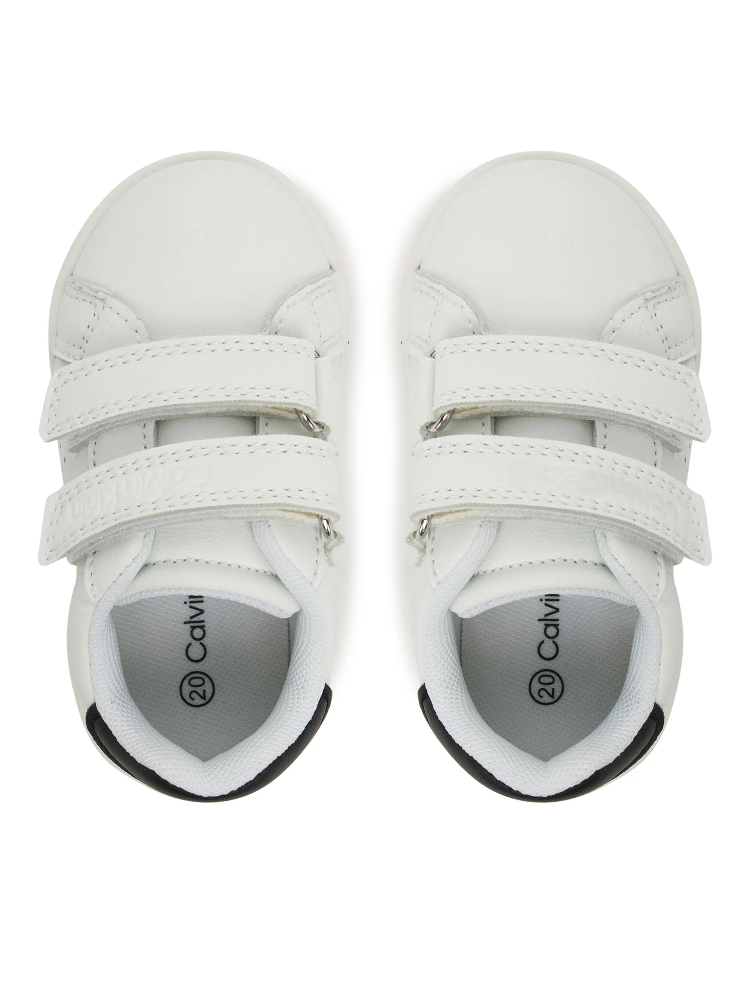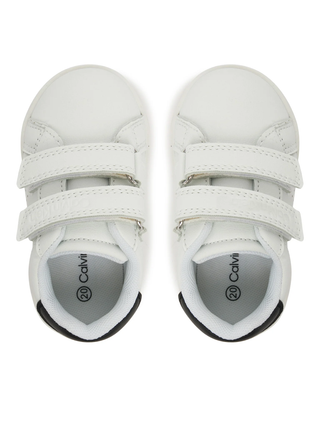 Sneakers unisex da bambino realizzate in ecopelle. Apertura con velcro. Logo monogram in galvanica argento sul lato esterno. Tomaia in ecopelle Suola in gomma