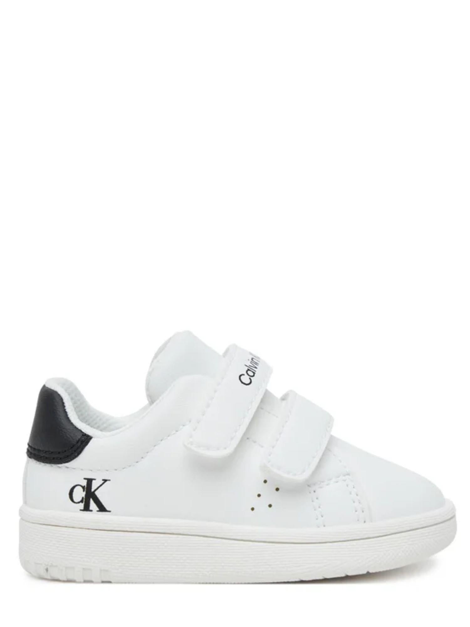 Sneakers da bambino realizzate in ecopelle. Chiusura con strappi. Stampa del logo sulla fascetta frontale e sul lato esterno. Tomaia in ecopelle Suola in gomma