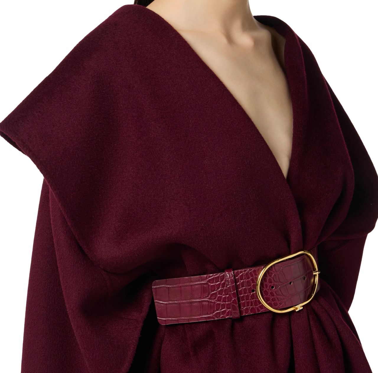 Elisabetta Franchi mantella in lana con cintura borgogna
