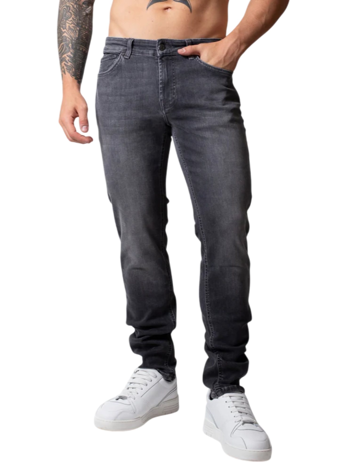 Jeans da uomo realizzata in denim elasticizzato effetto used. Gamba affusolata. 92% cotone 8% elastan