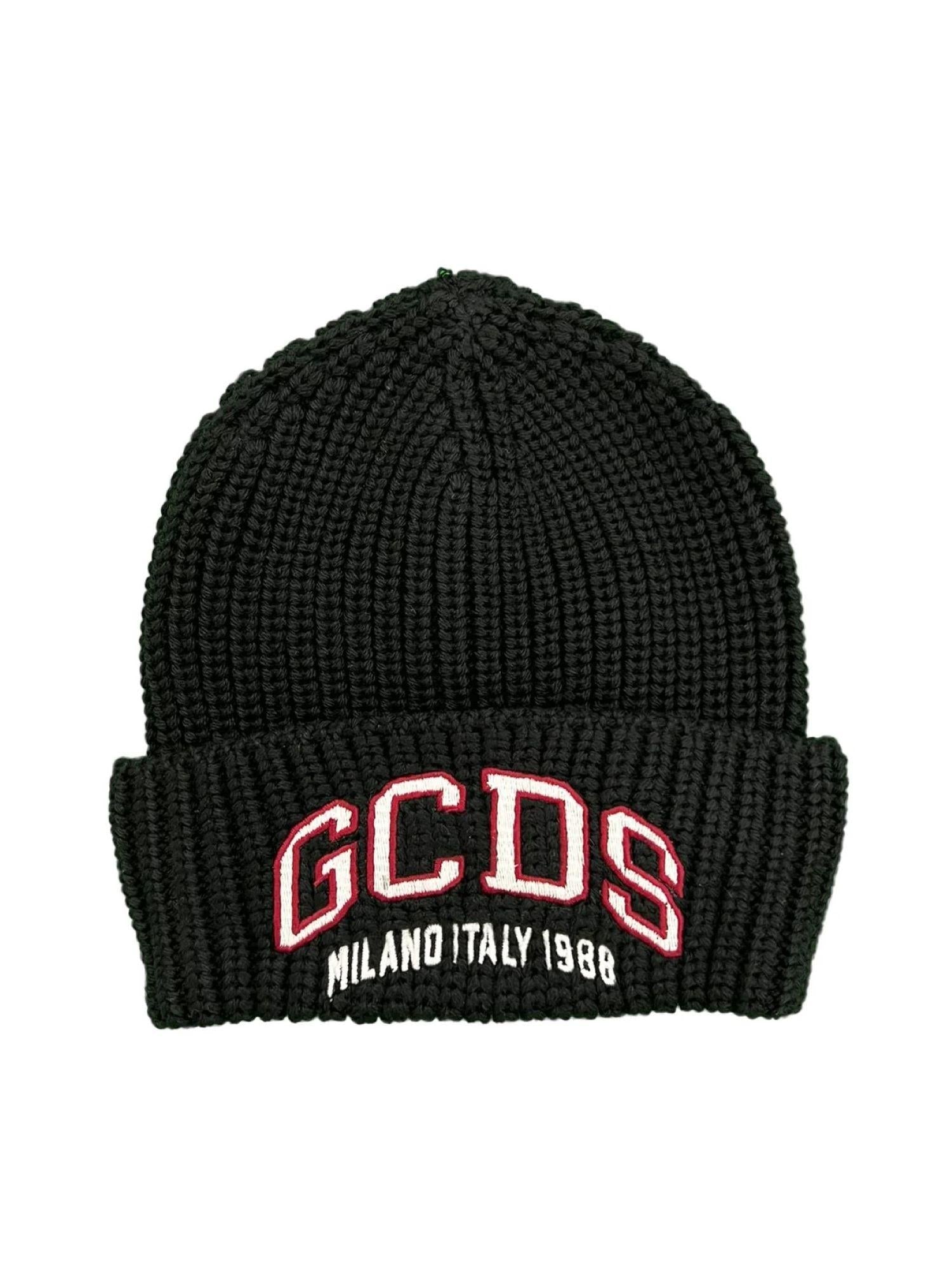 Cappello da bambino realizzato in maglia misto lana a costine. Ricamo del logo sul davanti del risvolto. 50% lana 50% acrilico