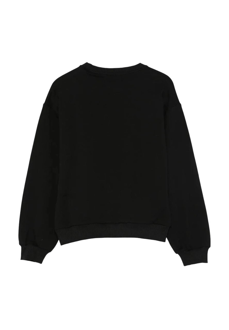 Felpa da bambina realizzata in cotone felpato. Stampa del logo glitterato sul davanti. Interno felpato. 95% cotone 5% elastan