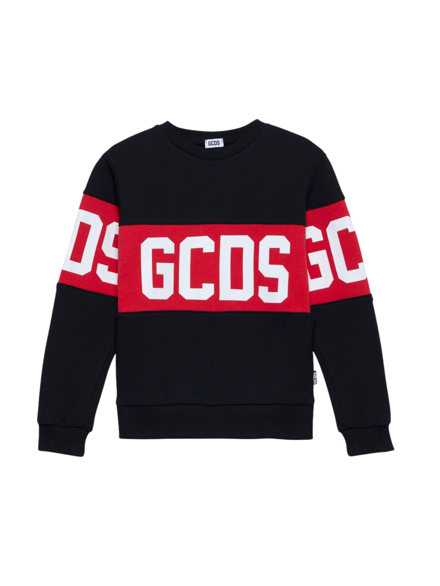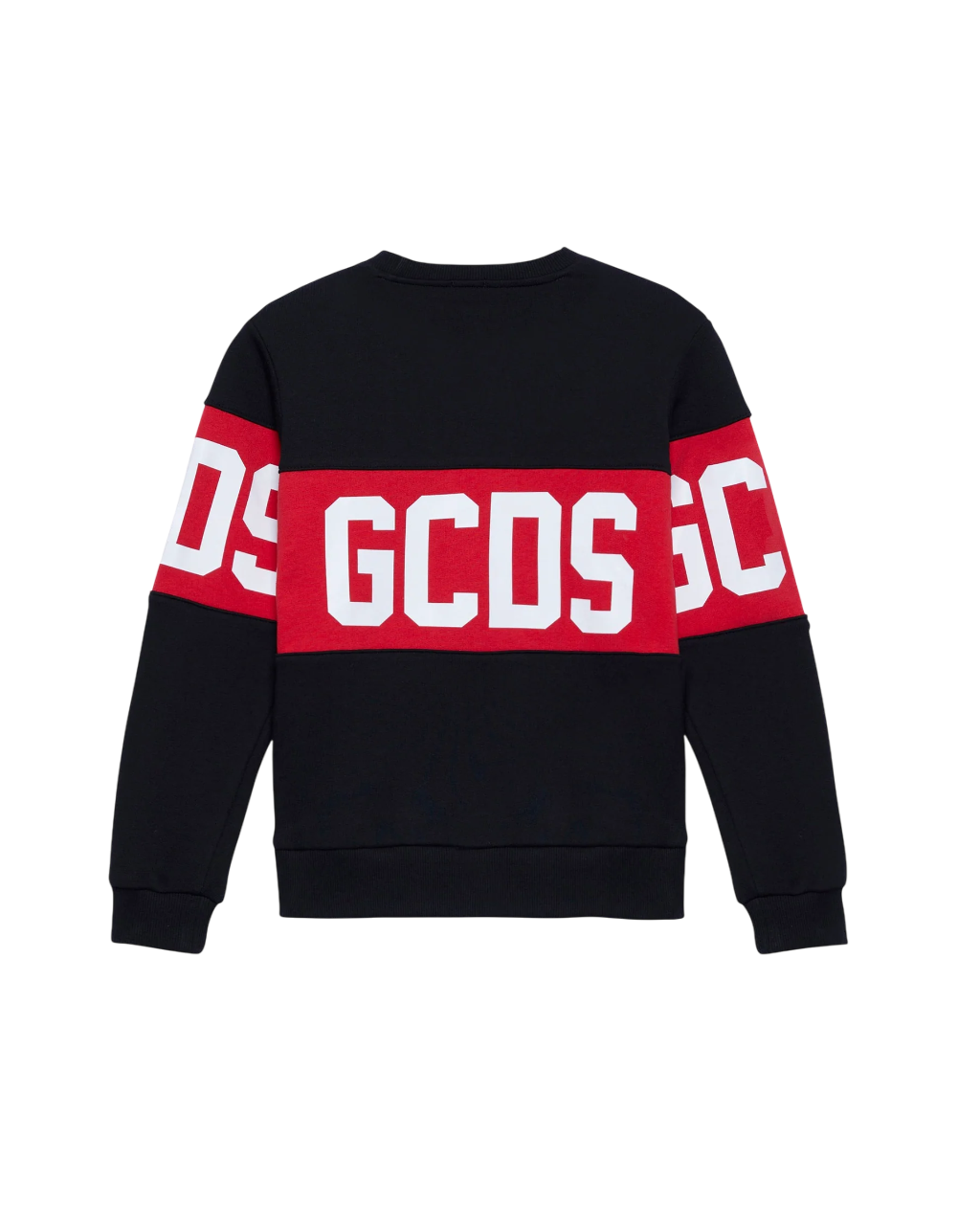 Felpa da bambina realizzata in spugna di cotone. Banda in contrasto di colore con maxi logo iconico. 100% cotone