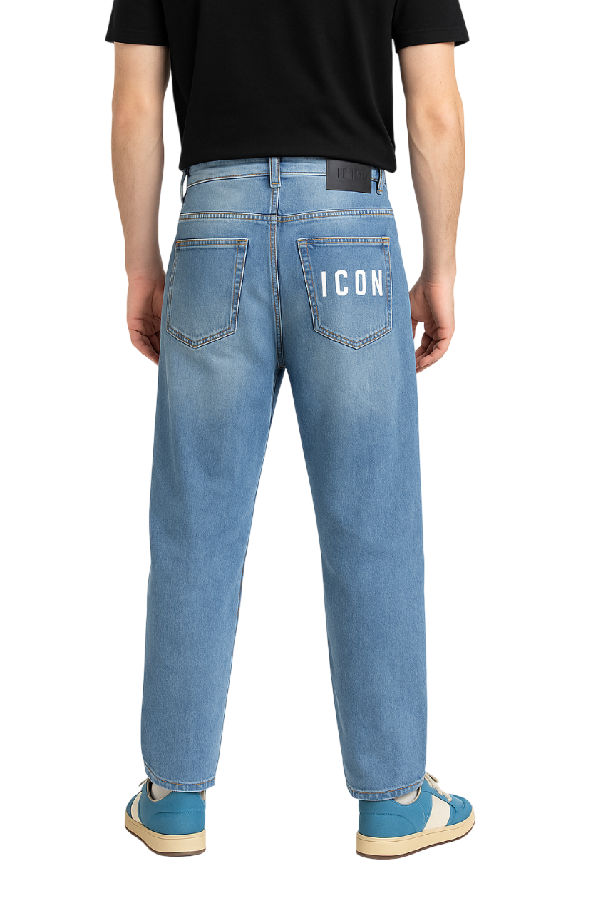 Jeans da uomo realizzati in denim di cotone rigido. Modello 5 tasche, effetto used. Catenella rimovibile con logo. 100% cotone