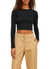 T-shirt corta da donna realizzata in cotone stretch. Lavorazione a costine. Maniche lunghe. Vestibilità cropped. 95% cotone 5% elastan