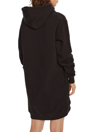 Abito in felpa da donna realizzato in caldo cotone. Cappuccio fisso con coulisse, logo sul davanti. Interno felpato.100% cotone